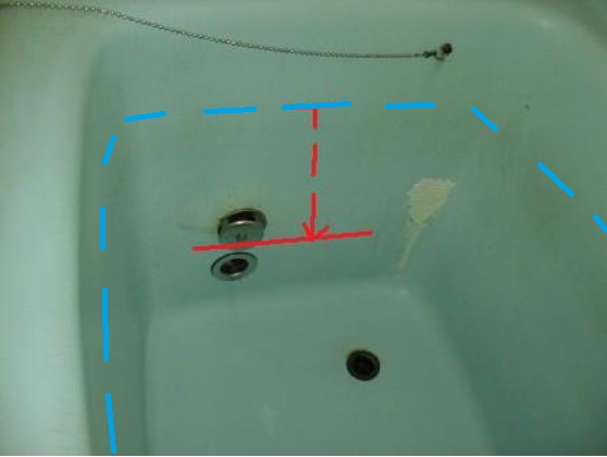 それ以降に水面が下がらないのは 明らかに上の管だけが破損で水漏れのはず。 時間が経てば浴槽の底まで水面が下がるなら 浴槽の底の排水ゴム栓の不良かと推測できます。