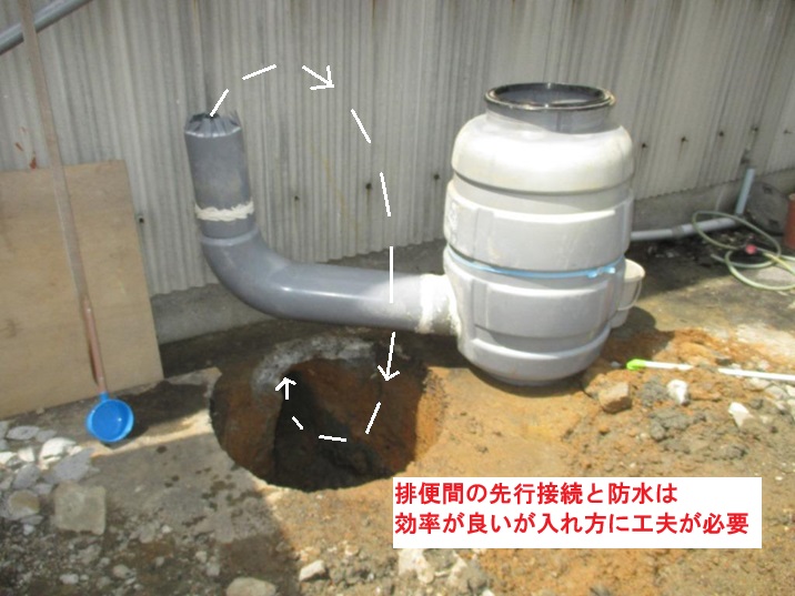 ここまでは、すでに便槽や導入管、排便管の納まりが