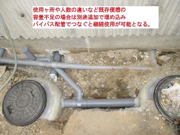 容量が足らなければ改めて追加で便槽を設置しバイパス配管で